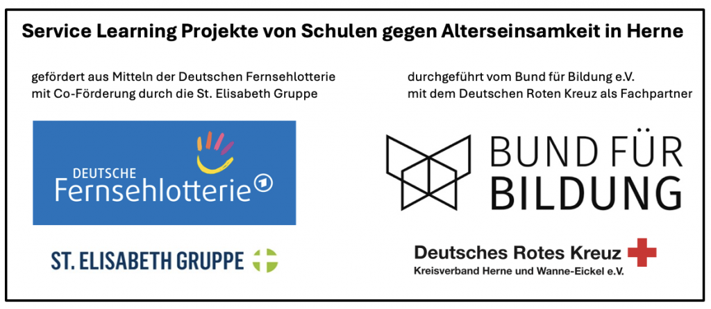 In Herne, Nordrhein-Westfalen, führen wir in den Jahren 2024 und 2025 unser Pilotprojekt gegen Alterseinsamkeit durch. Mit älteren Menschen, Schülerinnen und Schülern sowie Expertinnen und Experten entwickeln wir in einem kooperativen Prozess Service Learning Projekte, die auf die Bedarfe der Zielgruppen und der Region zugeschnitten sind.
